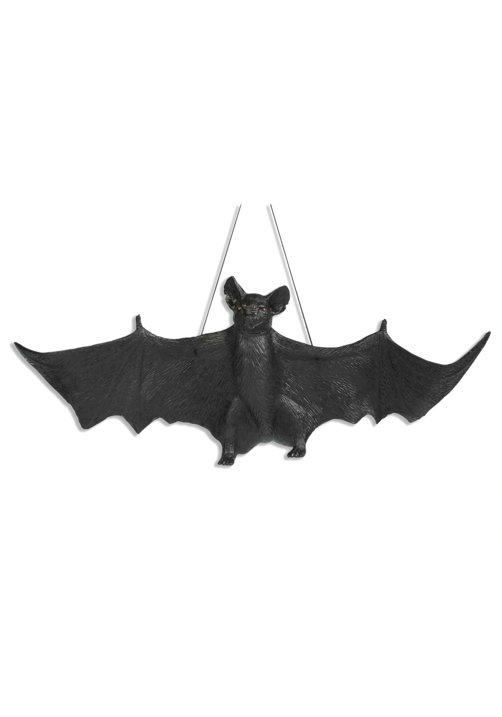 Yes, this bat is the perfect prank item! May we suggest that you name him and adopt him as a pet? This black plastic bat has green eyes and floppy wings, which we think makes him truly adorable. It can be hung using the elastic band that is attached to the top of the wings of the bat or by five suction cups on the underside. Great for scaring even the bravest of your friends! We understand these bats are fiercely loyal to their families, and spend many years of service scaring the bejeebers out of unsuspecting friends. Treat it well and he won’t fly away to the nearest mansion…just keep him happy by placing him in a dark box when not in use.