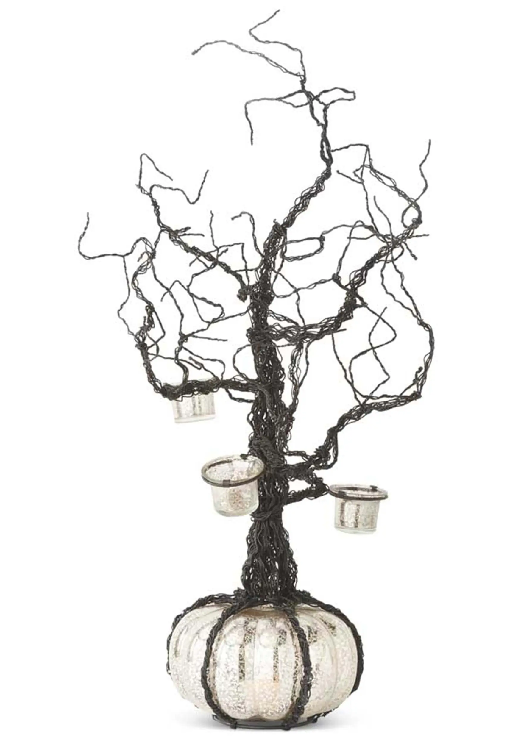 This is a 28″ Black Wire Votive Tree w/LED Mercury Pumpkin Base.