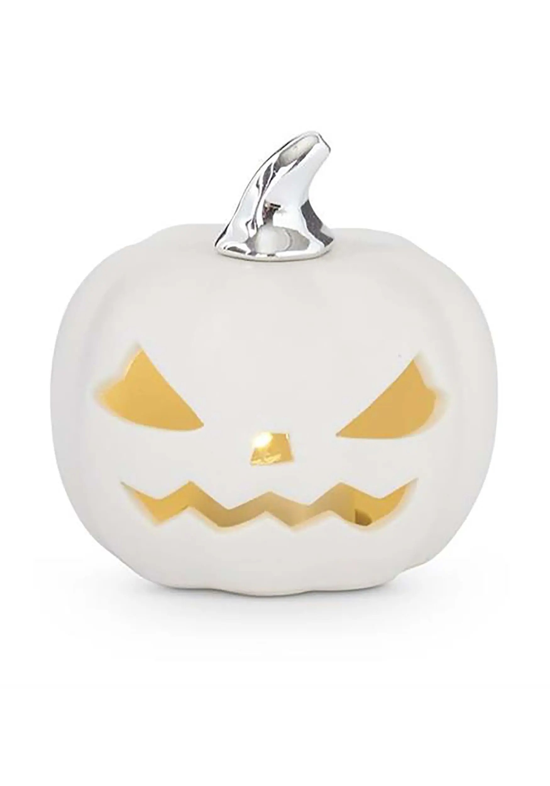 This is a 3″ White Ceramic LED Jack O Lantern.