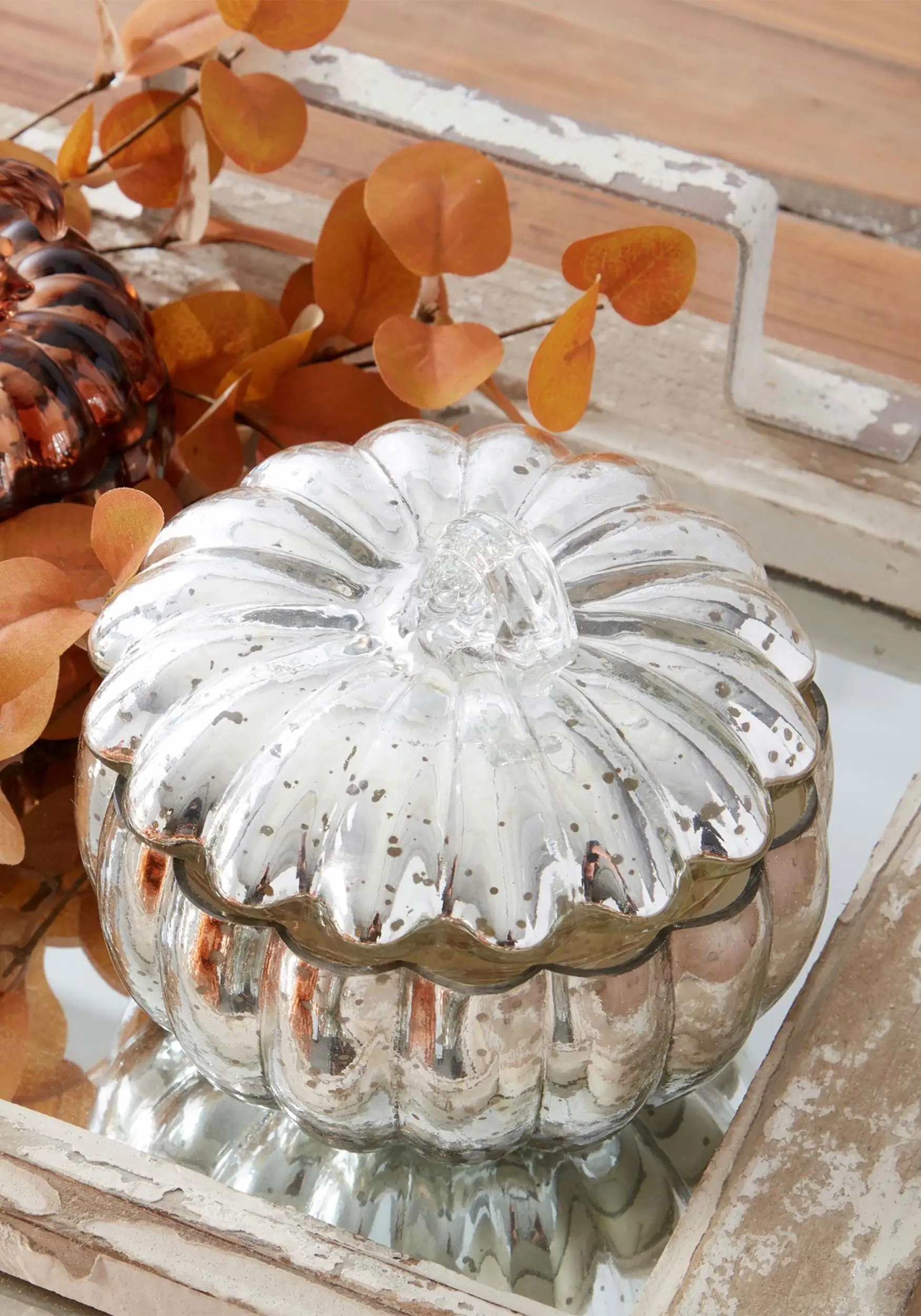 5.5-Inch Silver Mercury Glass Pumpkin Candle Decoration