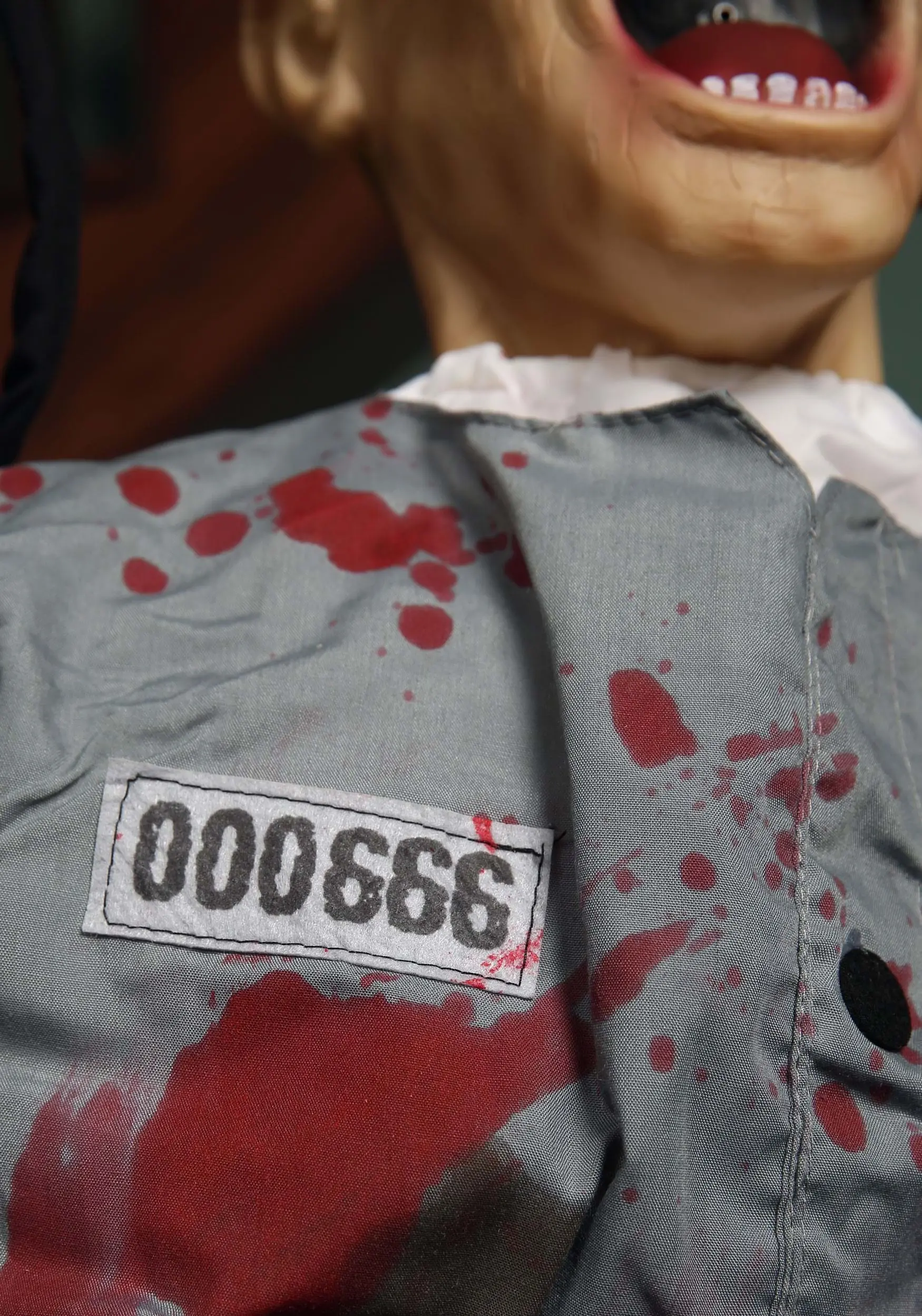 Shock your guests and trick-or-treaters with the animated death row decoration. The intricately painted and assembled animatronic wears a bloody prisoner jumpsuit and an excruciating expression on his face since he’s being electrocuted. When the decoration senses motion, it begins to violently flail around, scream, and eyes light up red.