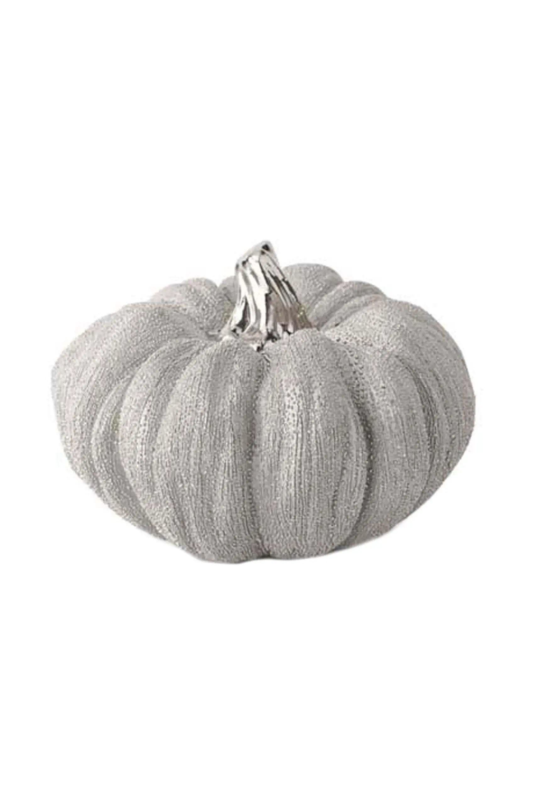 This is a 5″ Silver Metallic Textured Ceramic Pumpkin.