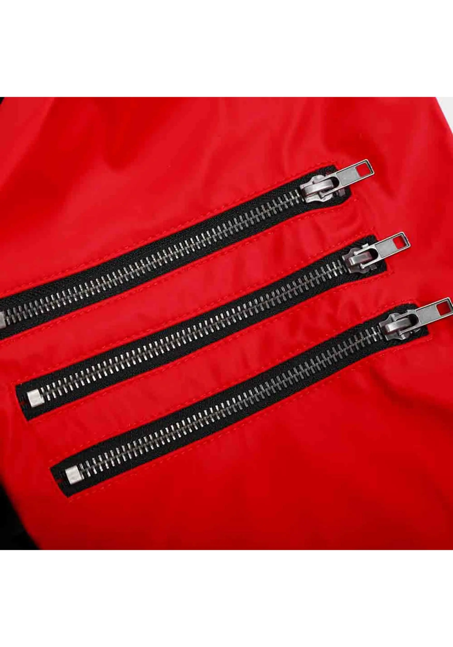- 3 zippers on the pant leg, printed graphics
