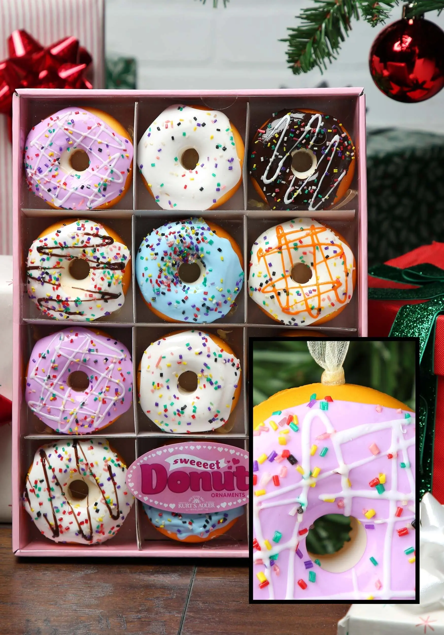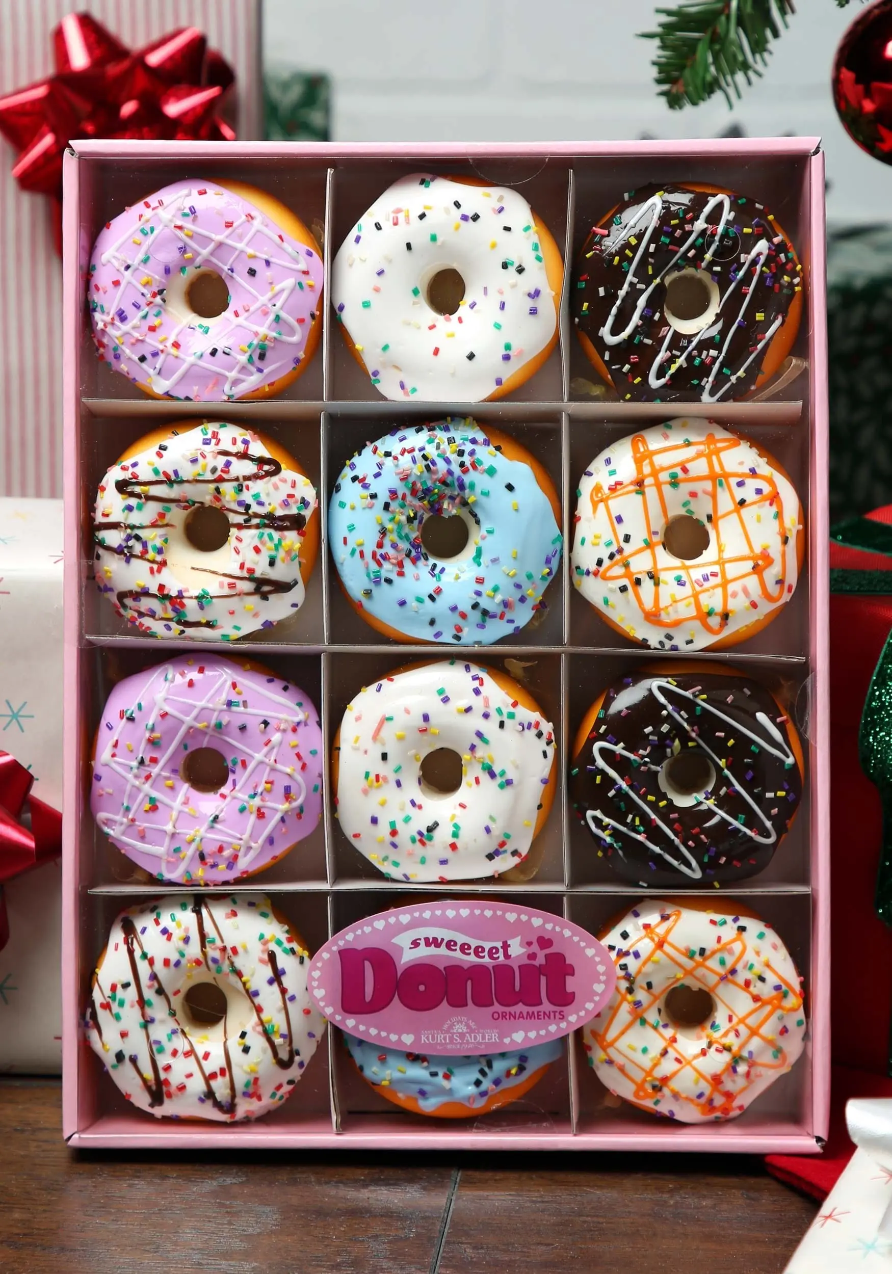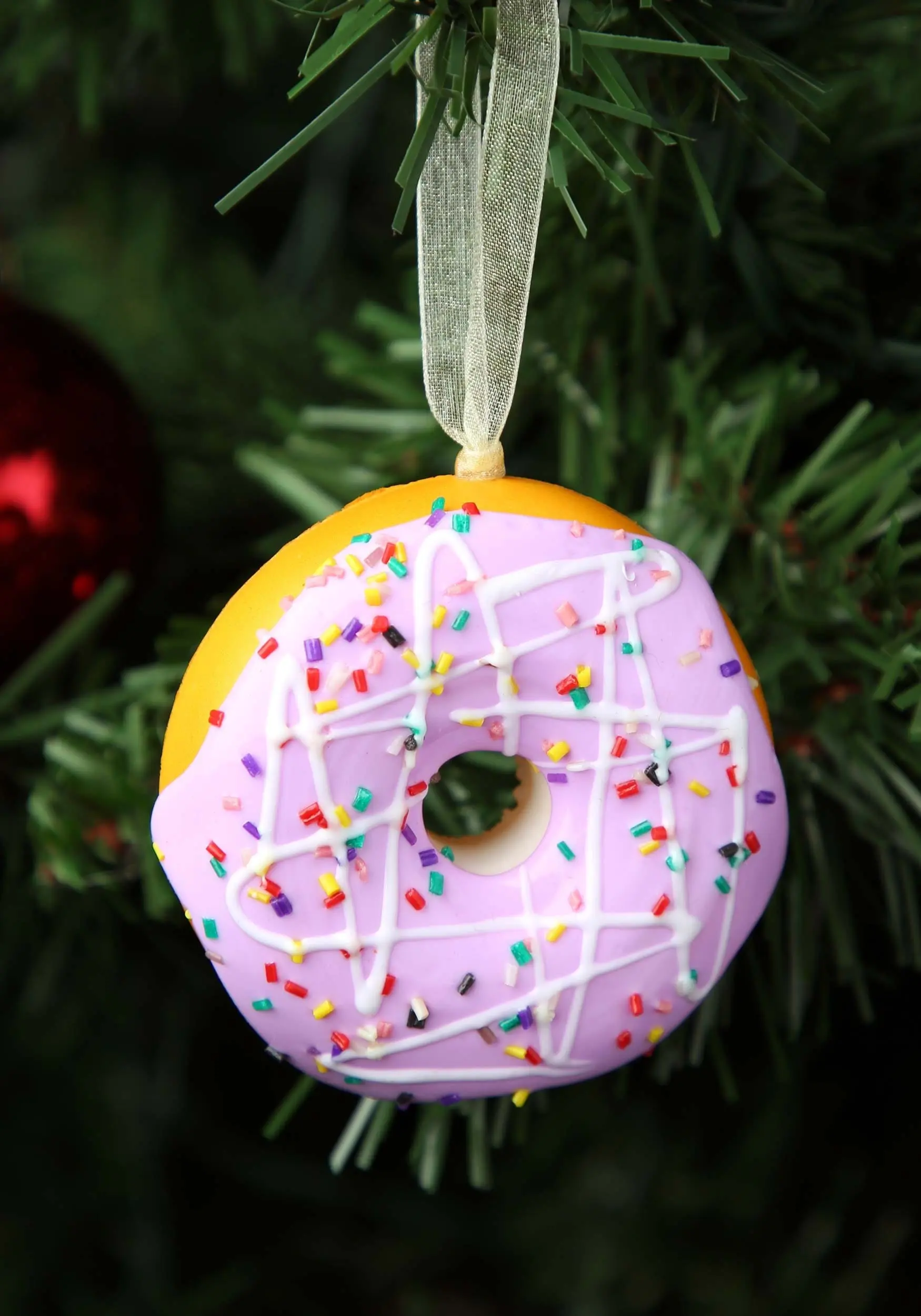 - Ornaments decorated to look like frosted donuts with sprinkles