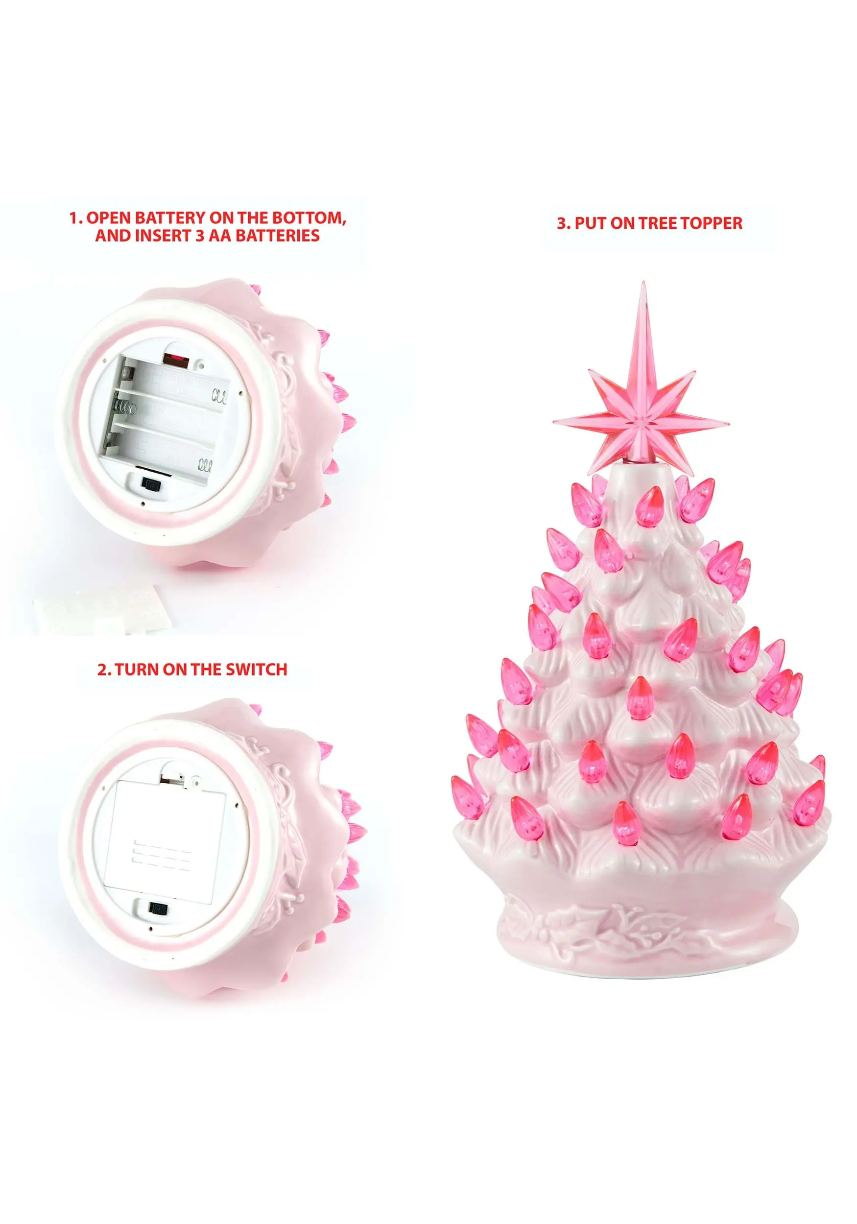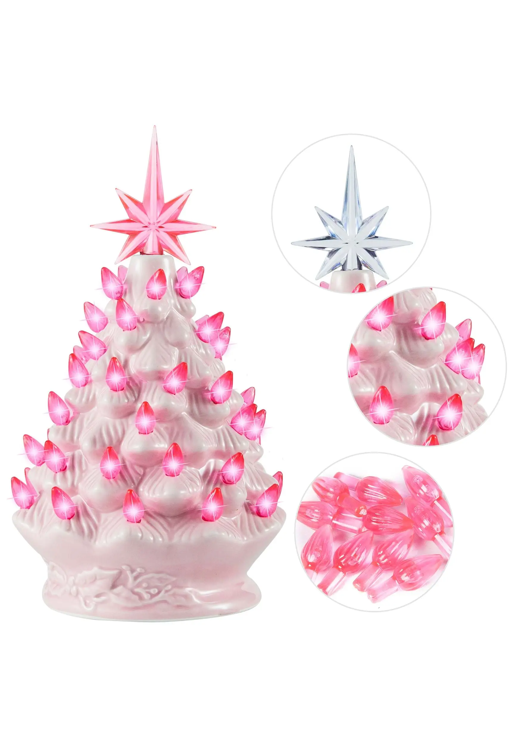 This is a 10″ Pink Ceramic Christmas Tree Decoration.