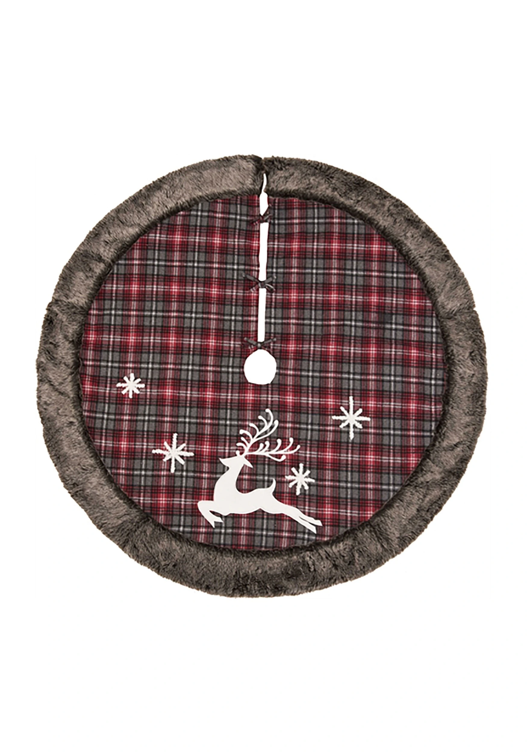 This is a Fabric Rustic Reindeer Tree Skirt.