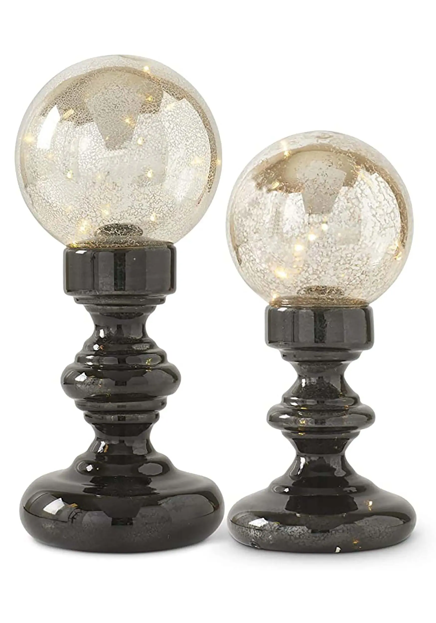 Set Of Two Mercury Glass LED Globes -halloween Shop set of two led mercury glass globes alt 1