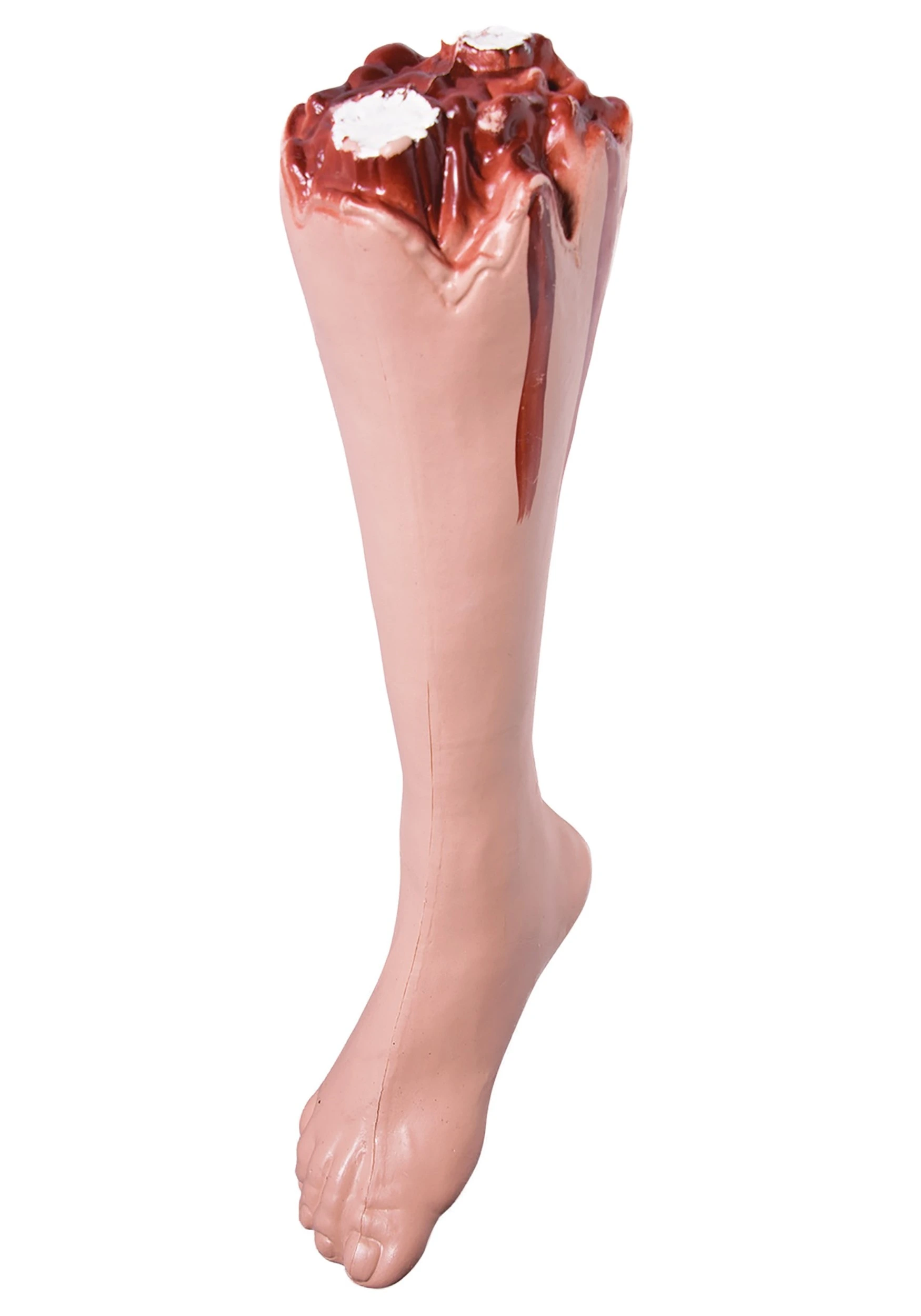This Value severed leg can serve multiple purposes from Halloween to Halloween. The molded plastic forms an eighteen-inch-long calf for a macabre and bloody Halloween theme. Add it to your zombie costume to add to your flesh-eating appeal. Delight Halloween revelers by serving it on a dinner plate next to the amuse-bouche. Or give it to Fido before your mother-in-law comes over and get the family talking for years to come. It’s your value leg, you decide what to do with it. One thing’s for certain, it’s sure to give you a leg up on your Halloween!