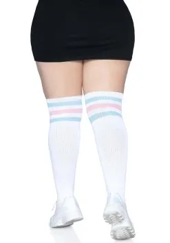 Women’s Plus Size White Athletic Socks With Pink And Blue Stripes