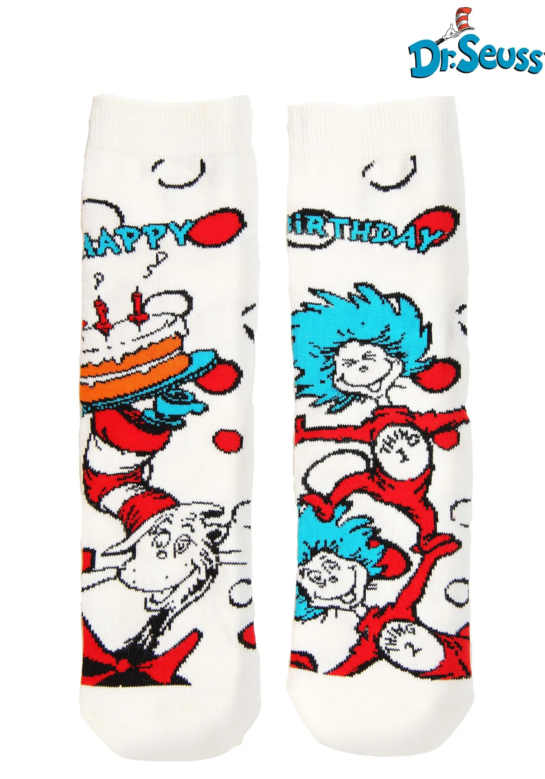These Cat in the Hat Birthday Socks are officially licensed from the Dr. Seuss book and feature a knit-in design of Cat in the Hat, along with Thing 1 and Thing 2. They’re made out of an acrlyic, nylon, and spandex blend, giving them a nice and snug fit. They’re the perfect way to start out any day, especially a birthday!